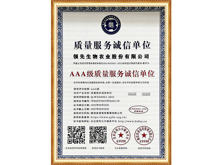 AAA級質量服務誠信單位